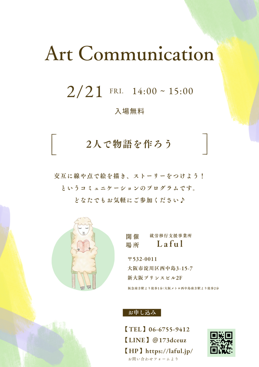2人1組で簡単な絵を描いて物語にするという、アート要素を取り入れたコミュニケーションのワークとなっております。